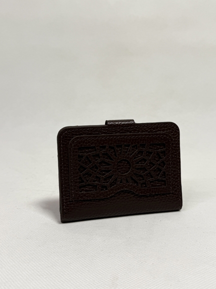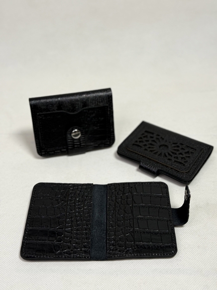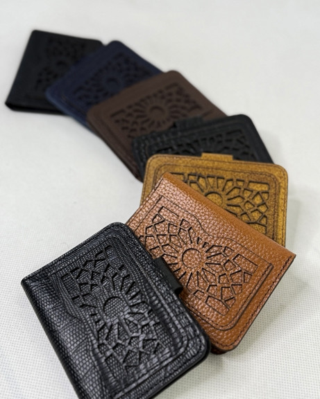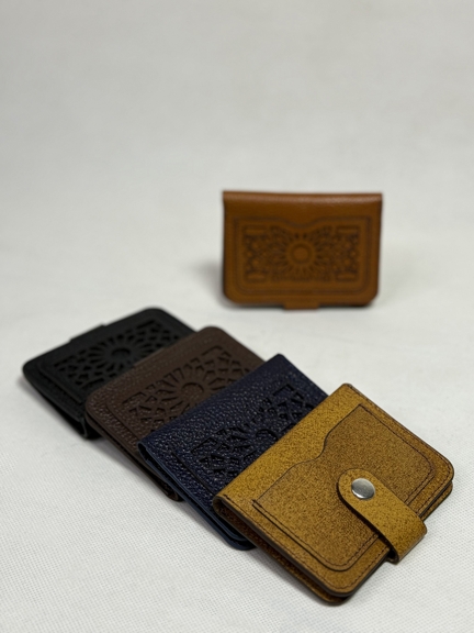 جاکارتی اسلیمی با طراحی خاص با چرم طبیعی گاوی دوخته شده است و دارای 10 عدد جای کارت دارد و یک دکمه دارد. این جاکارتی یک کار شیک و کوچیک و جمع و جور بوده و طرح اسلیمی زیبایی خاصی بهش داده است.