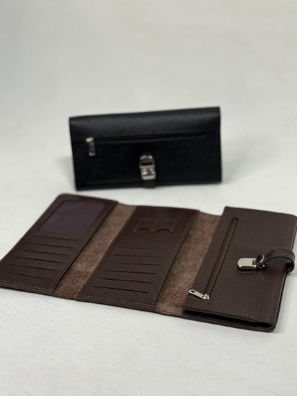 این کیف پول 16 تا جای کارت،دو تا جاعکسی بزرگ و دو تا جیب زیپ دار داره- یک فضای جاموبایلی و دو فضای اسکناس با دو عدد جای سیم کارت دارد.کیف باقفل مگنتی باز و بسته می شود.
